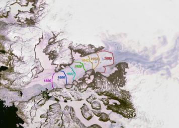 Keywords: Jakobshavn Isbræ 1850-2003.jpg Retreat of the calving front of the Jakobshavn Isbræ 1850-2003 West Greenland from Nasa Earth Observatory http //www nasa gov/101952main_calvingstill_2001_2003 tiff PD-USGov Jakobshavn Isbræ Satellite pictures of Greenland Retreat of glaciers Retreat of glaciers in Greenland |