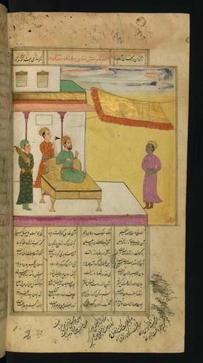 | Keywords: Jalal al-Din Rumi, Maulana - A Colored Slave, Washed and Shaved, Stands in Front of the King - Walters W62666B - Full Page.jpg On this folio from Walters manuscript W 626 a colored slave washed and shaved stands in front of the king islamic 1663 1073 ink and pigments on thin laid paper probably Kashmiri cm 26 5 15 accession number W 626 66B 83735 Ibrahim date and mode of acquisition unknown round seal impression Ibrahim on front flyleaf iia Henry Walters Baltimore date and mode of acquisition unknown Walters Art Museum Henry Walters Acquired by Henry Walters place of origin Bharat Walters Art Museum license 2D Manuscript by Rumi Walters MS 626 Media contributed by the Walters Art Museum needs category review |