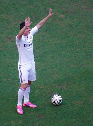 Keywords: james rodriguez footballer real madrid balloon football stadium santiago bernabeu football stadium spain lawn happy greet colombian best player