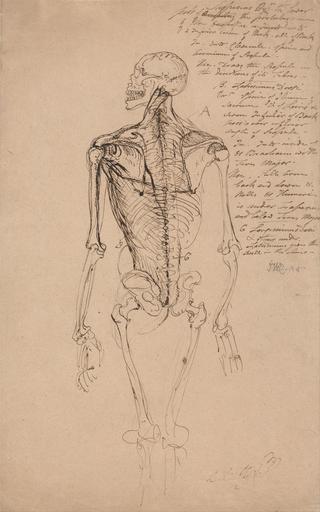 | Keywords: James Ward - Drawing of a Man's Skeleton - Google Art Project.jpg Inscribed in brown ink upper right a long anatomical note with references to letters labelling drawing; in graphite center right JWD RA Inscription _Signed_and_Dated Signed in graphite center right JWD RA Not on View Brown ink over graphite on medium slightly textured beige laid paper science man's anatomy medicine skelton skull figure study still life drawing special url_id KQEcEFVd2bm2nw PD-old-100-1923 1859 Drawings by James Ward Google Art Project works by James Ward Skeletons in art |