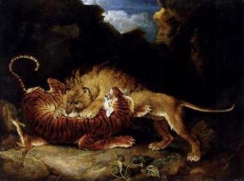 Keywords: James Ward Lion and Tiger Fighting 1797.jpg en Lion and Tiger Fighting by James Ward Oil on Canvas 1797 scan of photo of original work creator James Ward 1797 public domain PD-old-100 Paintings by James Ward