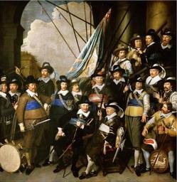 | Keywords: Jan Aelbertsz Rotius - schutterstuk Hoorn 1649.jpg  Group portrait of the Hoorn civic guard schutterstuk in 1649 Inscribed below left J A Rotius fecit Ao 1649 Men portrayed are Coninck Seyne <br> Matemaker Aryan Allertsz<br> Neck Pieter Willemsz van<br> Coster Claes Pietersz<br> Visscher Jacob Jansz flag bearer <br> Bos Gerrit Martsz<br> Waerden Cornelis Dirksz sergeant <br> Broer Jan Meynertsz<br> Hoogen Jan Wormboutsz van<br> Steenhuys Cornelis Reyertsz<br> Beek Isaac van der corporal <br> Kinneman Hendrik Jansz<br> Meerhuyzen Jan Dirksz<br> Brasem Willem Cornelisz<br> Sijvertsz Claas http //www westfriesmuseum nl/index php option com_memorix Itemid 37 task topview CollectionID 1 RecordID 1708 PhotoID 01380 Westfriesmuseum nl 1649 creator Jan Albertsz Rotius 01380 Westfries Museum oil on canvas 341 x 356 cm PD-old-100 Civic guard of the Netherlands Jan Albertsz Rotius Militia paintings 1649 paintings Paintings in the Westfries Museum |