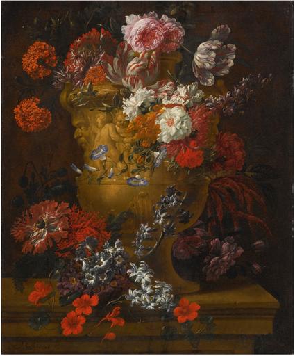 Keywords: Jan Baptist Bosschaert - Still life of flowers in a sculpted stone urn 2.jpg Artwork creator Jan Baptist Bosschaert en Still life of flowers in a sculpted stone urn 1713 http //www sothebys com/en/auctions/ecatalogue/2013/old-master-paintings-n08952/lot 259 html Oil on canvas cm 75 62 2 signed lower left JBosschaert f Auctioned at Sotheby's 31 January 2013 - 01 February 2013 in London lot 259 A pair Other versions PD-old-100 Jan Baptist Bosschaert 18th-century paintings in unidentified private collections 1713 oil on canvas paintings 1710s still-life paintings Vases in still-life paintings 18th-century still-life paintings of flowers |