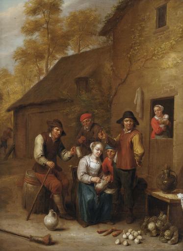 Keywords: Jan Baptist Nollekens (attr) Fröhliche Bauerngesellschaft vor einem Haus.jpg en Farmers in front of a house de Fröhliche Bauerngesellschaft vor einem Haus oil canvas cm 64 47 5 Nagel Auktionen http //www auction de by 1720 Attributed to PD-old-100 Jan Baptist Nollekens Paintings of peasants Flemish villages in genre paintings Images by Nagel Auktionen |
