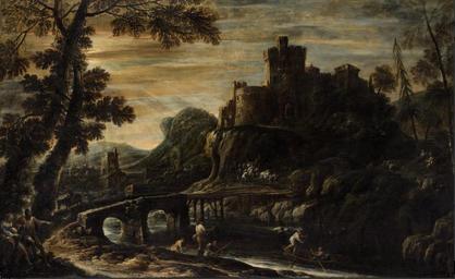 Keywords: Jan de Momper - A river landscape with fishermen before a bridge.jpg oil canvas cm 91 147 accession number object history credit line exhibition history At Bonhams London England on 27 April 2016 lot 232 https //www bonhams com/auctions/23252/lot/232/ PD-old-100 Jan de Momper Paintings of fishermen Paintings of rivers Baroque paintings of landscapes 17th-century landscape paintings |