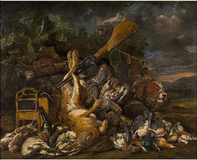 | Keywords: Jan Fyt - Hunting trophy.jpg Artwork Creator Jan Fyt 17th century Oil on canvas size cm 102 127 7 Institution Royal Museum of Fine Arts Antwerp object history credit line accession number http //62 221 199 163/kmska2/zoom aspx image 882 001 jpg title Jachtbuit PD-old-100 Hunting pieces by Joannes Fijt Flemish Baroque paintings in the Royal Museum of Fine Arts Antwerp |