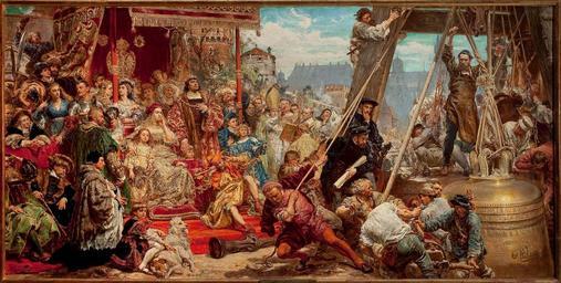 Keywords: Jan Matejko, Zawieszenie dzwonu Zygmunta na wieży katedry w Krakowie w 1521 roku.jpg Artwork Creator Jan Matejko 1874 http //cyfrowe mnw art pl/dmuseion/docmetadata id 4798 oil canvas Size cm 94 189 Size cm 102 198 x 5 Institution National Museum in Warsaw ZBIORY SZTUKI POLSKIEJ DO 1914 r place of discovery object history exhibition history credit line accession number MP 441 http //cyfrowe mnw art pl/dmuseion/docmetadata id 4798 MNW Cyfrowe PD-old-100 National Museum in Warsaw partnership The Hanging of the Sigismund bell at the Cathedral Tower in 1521 in Kraków by Jan Matejko |