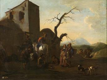 | Keywords: Jan Miel - Hunters at Rest.jpg Artwork creator Jan Miel other date between 1633 1663 oil on canvas size cm 50 67 Institution Museo del Prado object history credit line accession number https //www museodelprado es/coleccion/galeria-on-line/galeria-on-line/obra/parada-de-cazadores/ PD-old-100 Jan Miel Flemish paintings in the Museo del Prado 17th-century landscape paintings 17th-century oil on canvas paintings in Spain Resting in art 1601-1650 paintings 17th-century way of life in painting |