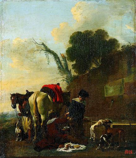 | Keywords: Jan Miel - Hunters at Rest (Hermitage).jpg Artwork creator Jan Miel firsthalf other date century 17 oil canvas size cm 39 45 5 Institution Hermitage Museum St Petersburg Russia object history credit line accession number http //www hermitagemuseum org/wps/portal/hermitage/digital-collection/01 +Paintings/30582/ lng en PD-old-100 Jan Miel Hunters at Rest 17th-century landscape paintings 17th-century oil on canvas paintings in Russia Resting in art Paintings by Jan Miel in the Hermitage Genre paintings in the Hermitage 1601-1650 paintings 17th-century way of life in painting Bamboccianti |