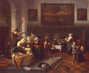 Keywords: Jan Steen The Christening.jpg Artwork creator Jan Steen title The Christening So de Oude songen so pypen de Jogen 1669 oil on canvas unknown Other versions PD-old-100 ImageNote 1 859 93 120 141 1000 819 2 The painting Peeckelhaering by Frans Hals ImageNoteEnd 1 Jan Steen 17th-century paintings location missing 1669 genre paintings 17th-century oil paintings of people 17th-century paintings of birds 17th-century paintings of dogs Feasts in art Kooikerhondje Malle Babbe Paintings of humans with animals