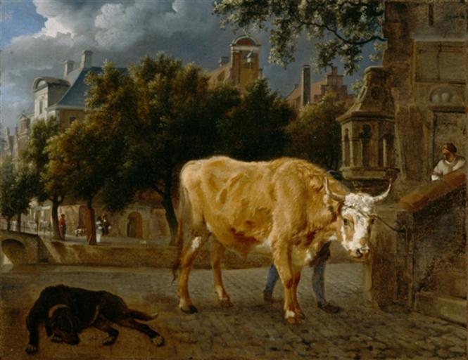 Keywords: Jan van der Heyden and Adriaen van de Velde - Bull in a city street.jpg Artwork creator Jan van der Heyden and creator Adriaen van de Velde Bull in a city street ~ 1670 oil on canvas 31 4 x 40 3 cm; framed 50 2 x 58 4 x 7 0 cm Detroit Institute of Arts http //www dia org/object-info/a554f876-dc23-4e29-8a18-abb85622b99f aspx position 260 Detroit Institute of Arts Other versions PD-old-100 Paintings by Jan van der Heyden 1670 Paintings by Adriaen van de Velde 1670 Dutch paintings in the Detroit Institute of Arts 1670s paintings Oil paintings of bulls |