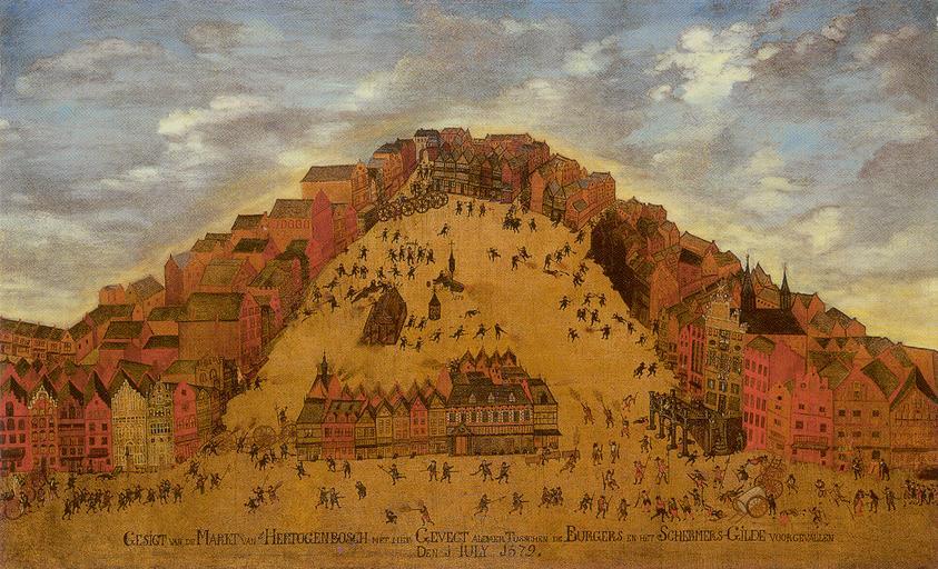 Keywords: Jan van Diepenbeeck 001.jpg Northern Netherlands Jan van Diepenbeeck actief Noordelijke Nederlanden 1573-1621 nl Het Schermersoproer te 's-Hertogenbosch in 1579 ~ 1600 Oil on canvas cm 82 152 institution Noordbrabants Museum G<small>ESIGT VAN DE</small> M<small>ARKT VAN <sup>S ™</sup></small>H<small>ERTOGENBOSCH MET HET</small> G<small>EVEGT ALDAER</small> T<small>USSCHEN DE</small> B<small>URGERS EN HET</small> S<small>CHERMERS-</small>G<small>ILDE VOORGEVALLEN</small> // D<small>EN</small> J IULY 1579 nl http //www bossche-encyclopedie nl/Straten/Markt htm Geschiedenis www bossche-encyclopedie nl 852 Other versions PD-Art History of 's-Hertogenbosch Paintings in the Noordbrabants Museum Markt 's-Hertogenbosch Battles of the Eighty Years' War 1579 |
