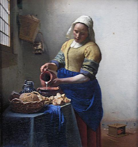 Keywords: Jan Vermeer.The kitchen maid.jpg File Johannes Vermeer - Het melkmeisje - Google Art Project jpg Higher resolution better colour balance low quality The kitchen maid - oil on canvas c 1658 - Creator Johannes Vermeer institution Rijksmuseum 2006-06-10 G Jansoone own photo 96px PD-old-100 The Milkmaid by Johannes Vermeer |
