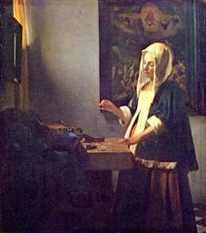 Keywords: Jan Vermeer van Delft 015.jpg Artwork de Die Perlenwägerin en Woman Holding a Balance nl Vrouw met weegschaal Oil on canvas cm 42 35 5 National Gallery of Art Genre works National Gallery of Art Washington D C c 1665 Creator Jan Vermeer van Delft PD-old-100 Other versions <gallery> File Womanholdingabalance-vermeer jpg</gallery> Woman holding a balance by Johannes Vermeer |