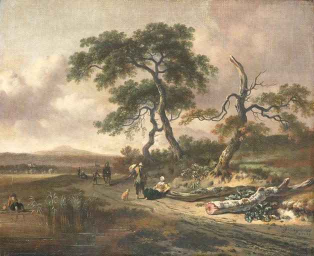 Keywords: Jan Wijnants - Landschap met marskramer en rustende vrouw.jpg Artwork Q17342421 creator Jan Wijnants title Landscape with pedlar and resting woman Landschap met marskramer en rustende vrouw 1669 oil canvas cm 29 5 35 Rijksmuseum object history ProvenanceEvent 1885-06-30 loan LangSwitch das the au het Rijksmuseum Amsterdam LangSwitch die Stadt Amsterdam the city of Amsterdam la ville d ™Amsterdam de Stad Amsterdam www rijksmuseum nl http //www rijksmuseum nl/ lang en Home https //www rijksmuseum nl/collectie/SK-C-277 Info https //www rijksmuseum nl/assetimage2 jsp id SK-C-277 Pic SK-C-277 Other versions PD-old-100 ImageNote 1 1046 843 128 50 1177 960 2 J Wijnants / 1669 signature / date ImageNoteEnd 1 Pedlars in art 1669 Jan Wijnants 1669 Paintings by Jan Wijnants in the Rijksmuseum Amsterdam 1669 1660s landscape paintings |