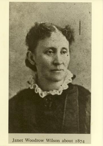 | Keywords: janet woodrow wilson janetwoodrowwilson portrait people monochrome Local Accession Number: 1041 Description: Portrait of Woodrow Wilson's mother. Photographer: Unknown Source: Unknown Size: 5x7, 11x16 Medium: Print, Black and White Date: c. 1874 Local Accession Number: 1041 Description: Portrait of Woodrow Wilson's mother. Photographer: Unknown Source: Unknown Size: 5x7, 11x16 Medium: Print, Black and White Date: c. 1874 | ||||