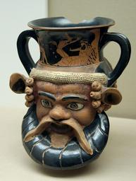 Keywords: Janiform kantharos BM E786.jpg Sileni breaking into a symposium Attic janiform red-figured kantharos with the moulded heads of a satyr and a woman ca 470 BC Sileni faisant irruption dans un banquet Canthare attique janiforme à figures rouges panse moulée en forme de tête de satyre et de tête de femme vers 470 av J -C Museum British Museum Upper floor Room 69 Greece and Rome Daily Life object history credit line accession number GR 1885 7-11 1 Cat Vases E 786 Jastrow 2006 other versions Symposium scenes in ancient Greek pottery Satyrs in ancient Greek pottery Sileni in ancient Greek pottery Kalos inscriptions Ancient Greek kantharoi Attic red-figure pottery Ancient Greek pottery in the British Museum |
