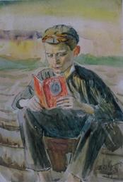 | Keywords: Jankieĺ Kruhier 1920s Reading Boy.jpg ru Яков К юге «Читающий мальчик» «По т ет сына а ка» 1920-е Бумага аква ель Бело усский госуда ственный а хив-музей лите ату ы и искусства be Якаў К уге «Хлопчык які чытае» «Па т эт сына а ка» 1920-я Папе а аква эль Бела ускі дзя жаўны а хіў-музей літа ату ы і мастацтва en Jacob Kruger Reading boy Portrait of the son Mark 1920s Watercolour on paper Belarusian State Archives-Museum of Literature and Art s 1920 own photo Jankieĺ Kruhier other versions PD-Belarus 1920s paintings in Belarus Portrait drawings of men of Belarus by Jankieĺ Kruhier Watercolor paintings in Belarus |