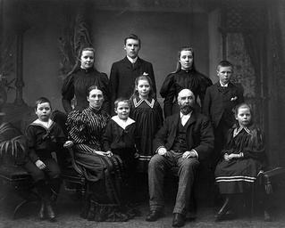 Keywords: brown family portrait greenville ireland munster father mother children siblings glass negative glassnegative thursday 17 january 1895 poole collection poolecollection leg of mutton sleeves legofmuttonsleeves a.h. poole ahpoole arthur henri poole arthurhenripoole waterford national library of ireland nationallibraryofireland people groupshot blackandwhite monochrome black and white We believe that this is the Brown family of Greenville (perhaps the name of their house), Waterford. Mrs Brown and her two older daughters (twins?) are bang on mid-1890s trend with their leg of mutton sleeves... Date: Thursday, 17 January 1895 NLI Ref.: POOLEIMP 286A We believe that this is the Brown family of Greenville (perhaps the name of their house), Waterford. Mrs Brown and her two older daughters (twins?) are bang on mid-1890s trend with their leg of mutton sleeves... Date: Thursday, 17 January 1895 NLI Ref.: POOLEIMP 286A |