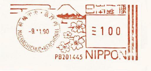 Keywords: Japan stamp type AA9.jpg en Meter stamp catalog image Japan type AA9 Richard Stambaugh Richard Stambaugh 2011-10-24 Meter stamps of Japan