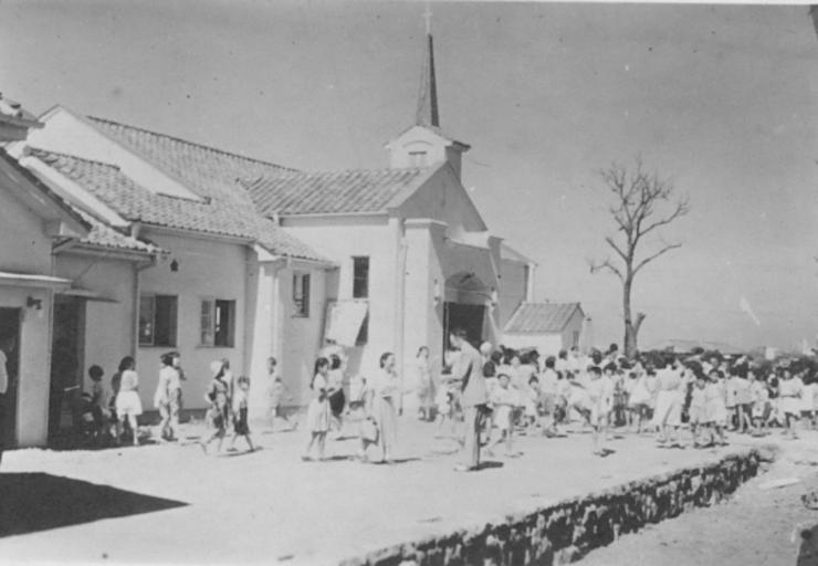 | Keywords: church tokyo housing project housingproject mennonite community mennonite church mission japan mennonitecommunitymennonitechurchmissionjapan blackandwhite monochrome black and white Caption: January 15, 1951. Arthur Eikamp speaking with a S. S. teacher in front of new church which is expected to reach 5,000 people making up the Gov. housing project in once devastated area of Tokyo. Citation: Mennonite Community Photographs, 1947-1953: Service. HM4-134 Box 1 Photo 030-38. Mennonite Church USA Archives - Goshen. Goshen, Indiana. Caption: January 15, 1951. Arthur Eikamp speaking with a S. S. teacher in front of new church which is expected to reach 5,000 people making up the Gov. housing project in once devastated area of Tokyo. Citation: Mennonite Community Photographs, 1947-1953: Service. HM4-134 Box 1 Photo 030-38. Mennonite Church USA Archives - Goshen. Goshen, Indiana. |