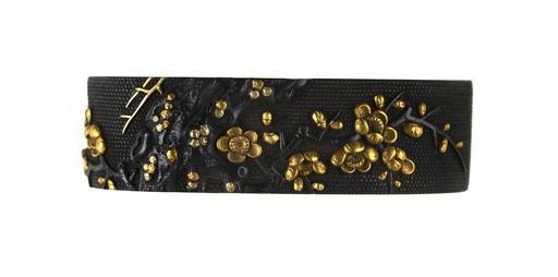 | Keywords: Japanese - Fuchi with Plum Tree and Bird - Walters 51996.jpg On the front is a plum tree in bloom A bird is on the reverse Both are emblems of spring This is part of a set with Walters 51 997 date shakudo copper gold cm 3 7 accession number 51 996 18979 William T / Henry Walters Collection Baltimore date and mode of acquisition unknown Walters Art Museum Henry Walters Acquired by William T or Henry Walters in black ink on the side indistint Japanese characters raifu place of origin Japan Walters Art Museum license Fuchi in the Walters Art Museum Media contributed by the Walters Art Museum needs category review |