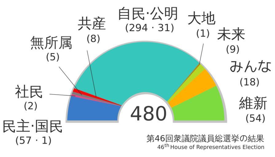 Keywords: Japanese general election 2012.svg Adobe Illustrator 5 fl 第46回衆議院議員総選挙の結 46th House of Representatives Election Election ja 第46回衆議院議員総選挙 201212171055Z 2012-12-17 assanges <sup> talk <nowiki> </nowiki> cont <nowiki> </nowiki> uploads </sup> WTFPL cc-zero SVG pie charts Election apportionment diagrams of Japan Japanese general election 2012 480 number |