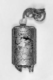 Keywords: Japanese - Inro with Autumnal Grasses and Flowers, with Netsuke and Ojime - Walters 67423.jpg A saya standard oblong gold lacquer four compartment inro in a sheath The sheath with a hanabishi pattern Both sides of the compartments decorated with autumn flowers and grasses - Chinese bellflower kikyo chrysanthemum kiku pampass grass yarrow hibiscus and bush-clover hagi The sheath saya in gold with an inlay of aogai A background of roiro in black for the upper compartments and nashiji for the lower The interior with nashiji and fundame The cord channels are external with an ojime button of coral branch Together with a carved ivory netsuke of two persimmons kaki with an inscription on the bottom century 19 Edo; Meiji lacquer ivory coral aogai inro cm 7 4 5 2 5 accession number 67 423 27992 Exposition Universelle Paris 1878 William T Walters city Baltimore Henry Walters city Baltimore Walters Art Museum Henry Walters Acquired by William T Walters 1878 inscription seal unidentified Exposition Universelle Paris 1878 Japanese Lacquers The Walters Art Gallery Baltimore 1984 place of origin Japan Walters Art Museum license Inro in the Walters Art Museum Inro Objects displayed at the Exposition Universelle 1878 Flowers in art |