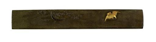 | Keywords: Japanese - Kozuka with a Bat and Crescent Moon in Clouds - Walters 51788.jpg A bat at the right side of the kozuka is shown flying towards the moon on the left Incised lines form clouds around the moon Additional clouds were drawn on the back Bats are a lucky emblem date shibuichi gold cm 9 6 accession number 51 788 34064 Henry Walters Baltimore date and mode of acquisition unknown Walters Art Museum Henry Walters Acquired by Henry Walters none place of origin Japan Walters Art Museum license Kozuka in the Walters Art Museum Media contributed by the Walters Art Museum needs category review |