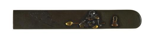 Keywords: Japanese - Kozuka with a Man Holding a Net - Walters 51789.jpg The man here may be the Chinese Zen eccentric Kensu Ch Xianzi Hsien Tzu He holds his net and a bucket sits next to him Despite the Buddhist prohibition on consuming flesh Kensu found enlightenment while fishing for shrimp century 18 shibuichi gold silver copper cm 9 6 accession number 51 789 23240 Henry Walters Baltimore date and mode of acquisition unknown Walters Art Museum Henry Walters Acquired by Henry Walters none place of origin Japan Walters Art Museum license Tosogu Japanese sword fittings in the Walters Art Museum Media contributed by the Walters Art Museum needs category review |
