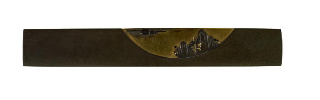 | Keywords: Japanese - Kozuka with a Pagoda in Mountains - Walters 51650.jpg On this kozuka a landscape view is framed by a semicircular border along the top edge Inside the border a pagoda can be seen among mountain cliffs At the upper left is a moon and clouds date copper gold cm 9 6 accession number 51 650 39039 Henry Walters Baltimore date and mode of acquisition unknown Walters Art Museum Henry Walters Acquired by Henry Walters Unsigned place of origin Japan Walters Art Museum license Tosogu Japanese sword fittings in the Walters Art Museum Media contributed by the Walters Art Museum needs category review |