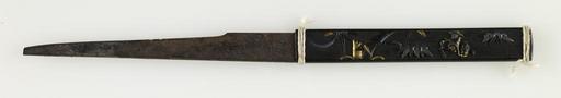 Keywords: Japanese - Kozuka with Sankan on a Mule - Walters 5112684.jpg At the right of the composition is a man riding backwards on his mule He is the 4th-century Chinese scholar and official Sankan Ch Shan Kien He enjoyed viewing the scenery around a lake near his home so much that he rode backwards when going home so he could keep looking at the view On the left is a clump of bamboo and a new moon This is part of a mounted set century 18 19 Edo copper gold cm 20 8 accession number 51 1268 4 36353 William T / Henry Walters Collection Baltimore date and mode of acquisition unknown Walters Art Museum Henry Walters Acquired by William T or Henry Walters none place of origin Japan Walters Art Museum license Kozuka in the Walters Art Museum Media contributed by the Walters Art Museum needs category review |