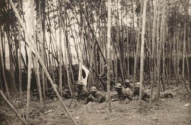 Keywords: Japanese light machine guns attacking enemy from bamboo forest in Kiangwan front.jpeg en Japanese light machine guns attacking enemy from bamboo forest in Kiangwan front ja 竹林中の我輕機 銃隊 江灣鎭攻撃 1932-02 日出新聞社編纂 洲建 と 洲・上海大事變史 昭和七年五 May 1932 unknown photographer PD-Japan-oldphoto Uploaded with UploadWizard Battle of Shanghai 1932 - Japanese forces Jiangwan Town |