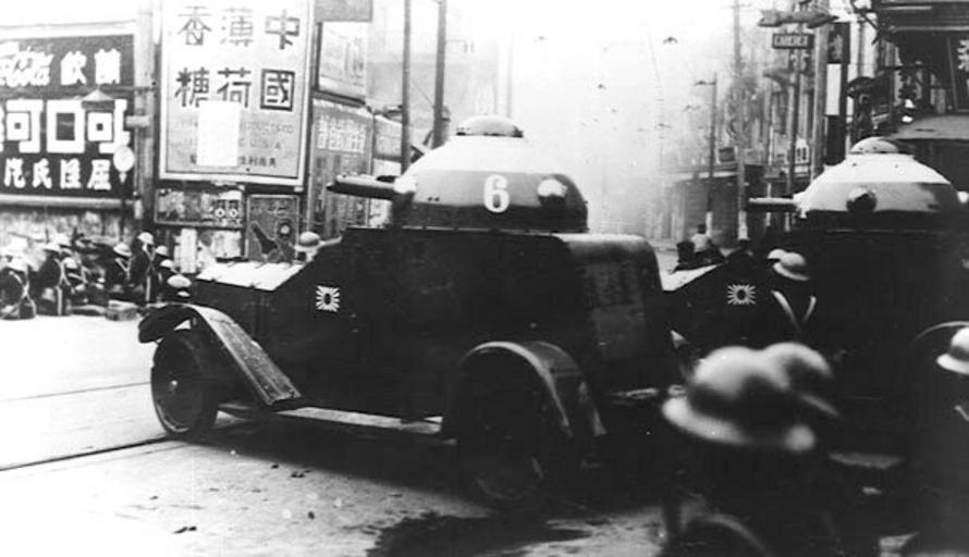 Keywords: Japanese Shanghai Special Naval Landing force, Vickers-Crossley M25 armored cars, 1932.jpg en Shanghai Special Naval Landing force defending its position near Isis Theatre Vickers-Crossley M25 armored cars No 6 No 4 advancing across the intersection of North Szechuen Road and Kewkong Road ja 北四 路アイシス 活動寫 館 附近の警備 北四 路と虬江路交差点を ヴィッカース・クロスレイ装甲車6号車 左 と4号車 右 http //www geocities jp/torikai007/japanchina/1937 html Mainichi Shimbun 1932-01-30 PD-Japan-oldphoto 31 254694 121 483503 Battle of Shanghai 1932 - Japanese forces Historical images of Shanghai Vickers-Crossley M25 Shanghai Special Naval Landing Force Coca-Cola signs North Sichuan Road Armored fighting vehicles of the Shanghai Special Naval Landing Force Shanghai International Settlement Qiu Jiang Road Japanese Special Naval Landing Forces |