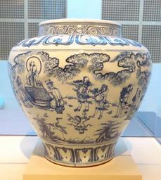 Keywords: Jar with a celebration of longevity by Taoist immortants, China, Jingdezhen, Jiangxi province, Ming dynasty, Jingtai or Tianshun emperor, porcelain with underglaze blue - Asian Art Museum of San Francisco - DSC01375.JPG en Exhibit in the Asian Art Museum of San Francisco San Francisco California USA This artwork is in the public domain because the artist died more than 70 years ago Photography was permitted in the museum without restriction 2013-11-05 20 17 19 own Daderot other versions cc-zero Porcelain jars baluster Baluster-shaped jars porcelain Jingdezhen porcelain in the Asian Art Museum of San Francisco Uploaded with UploadWizard |
