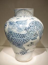| Keywords: Jar with dragon design, Korea, Joseon dynasty, 1750-1850 AD, porcelain with underglaze cobalt - Asian Art Museum of San Francisco - DSC01433.JPG en Exhibit in the Asian Art Museum of San Francisco San Francisco California USA This artwork is in the public domain because the artist died more than 70 years ago Photography was permitted in the museum without restriction 2013-11-05 20 24 05 own Daderot other versions cc-zero Porcelain jars baluster Baluster-shaped jars porcelain Korean ceramics in the Asian Art Museum of San Francisco Uploaded with UploadWizard Ceramics of the Joseon Dynasty |