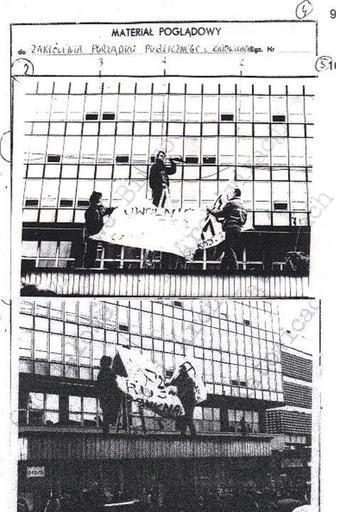 Keywords: Jaron Wojciech, rynek w Katowicach 18.03 1988.JPG pl Wojciech Jaroń Foto- Przebudzenie Katowickie 18 marca 1988 Wojciech Jaroń- działacz obywatelski okresu 1981- 1989 na Górnym Śląsku jeden z głównych animatorów i twórca fali dwuletnich demonstracji antykomunistycznych roku 1988-1989 w Katowicach współprowadzących do przełomu demokratycznego 1989 Potomek rodziny powstańców śląskich oraz działaczy śląskich straconych przez nazistów do 1945 roku Tyszanin z urodzenia Założyciel grupy ODZEW w Tychach powołanej powołanej w reakcji na stan wojenny i masowe aresztowania W roku 1982 odmowa służby wojskowej w polskiej armii stanu wojennego w reakcji na morderstwa górników na kopalni Wujek 16 12 1981 Wyrok więzienia z klasyfikacji karnej o zdradę stanu deklarowany dekretem stanu wojennego w Polsce to czyn karalny od pięciu lat do kary śmierci Ostateczna kara to 30 miesięcy nadzwyczajne złagodzenie ze względu na młody wiek Trzy kolejne karty powołania do wojska zostały zawiezione od Auschwitz za wskazaniem konsekwencji służby wojskowej dyktatorskiej antytotalitarnej armii Okres 1985-1988 to okres załamania Solidarności Wojtek Jaroń to twórca akcji morskich WIP 1985-1988 Ruchu Wolność i Pokój i tak zwanej piaskowej opozycji W sytuacji beznadziei spowodowanej zapaścią Solidarności sięgało się po wszelkie dostępne środki Zaskoczenie było najważniejszym elementem działania nowej fali opozycji Od roku 1986 założyciel ruchu Wolność i Pokój w Katowicach i Śląskiego Ruchu Ekologicznego ŚRE dwóch najaktywniejszych formuł oporu anty komunistycznego w Katowicach i regionie w latach 1986-1989 18 marca 1988 zorganizował pierwszą - od czasu tragedii na Kopalni Wujek 16 12 1981 i reakcji na te wydarzenia do maja 1982 - demonstrację anty komunistyczną w centrum Katowic Odbyła się ona na dachu wiaty tramwajowego przystanku na katowickim rynku naprzeciw tzw domu śląskiej prasy Uczestnicy zakuli się łańcuchami do postawionej na dachu na sztorc drabiny aby uniknąć ściągnięcia przez organy milicyjne Inni uczestnicy tego to Witold Trólka drabina trzymana na dole student socjologii US Anka Domańska 17 lat Ronaldo Betkiewicz student polonistyki US Wojciech Jaroń student socjologii US Autor umiędzynarodowienia Górnego Śląska i opozycji poprzez inicjatywę apelu ekologicznego na temat zagrożenia ekologicznego na Górnym Śląsku z 1987 roku Sygnatariusze pierwotnego apelu inicjującego Śląski Ruch Ekologiczny to m in Wojciech Szarama Wiktor Ostrowski Andrzej Roczniok Anna Domańska Krzysztof Błażejczyk Rafał Budnik Jan Mazurkiewicz Zofia Mazurkiewicz Regina Jaroń Maria Jaroń i inni Śląski Ruch Ekologiczny to masowa ponad polityczna formacja działania tak zwanego Katowickiego Przebudzenia 1988 Ludzie Katowickiego Przebudzenia to jedna z pierwszych formacji politycznych na Śląsku - jeśli nie jedyna - która wyartykułowała w latach 1987-1989 hasło śląski ruch śląska formacja jako uniwersalną ponadpartyjną wspólnie podzielaną wartość niezależną od przynależności partyjnej lub etnicznej w ramach państwowości polskiej Wychowali oni setki osób wciągnęli tysiące osób w krąg wydarzeń realizowanych w duchu radykalnego działania ale bez przemocy Działali tak jak poniżej napisano według słów Jana Pawła 2 Niżej podpisani inspirowani w szczególności orędziami pokojowymi Papieża Jana Pawła II postanawiamy założyć w Krakowie Ruch Wolność i Pokój Podstawowym celem działania Ruchu będzie propagowanie i pozyskiwanie jak największych rzesz Polaków dla prawdziwej niczym niezafałszowanej idei pokoju Warunkiem zaistnienia pokoju w życiu politycznym państw i narodów jest skuteczne zagwarantowanie wszystkim ludziom wolności osobistej Deklaracja Założycielska i Ideowa Ruchu Wolność i Pokój Kraków 1985 04 14 Współtwórcy masowych demonstracji w Katowicach współprowadzących do przełomu demokratycznego 1989 to Tomasz Witt Krzysztof Pióro Rinaldo Betkiewicz Artur Rogala Waldemar Szymczyk Anna Domańska Bogdan Starzyczny Anna Duda Bogdan Klich Joanna Miazek Jarosław Lipiec Irena Widera Wiktor Ostrowski Piotr Spyra Jerzy Gorzelik Maciej Muzyczuk Igor Iwaszko Piotr Klimek Wojciech Jaroń to autor jednych z niewielu akcji protestacyjnych przeciwko obecności sowieckiej broni nuklearnej w Polsce w latach 19976 87 88 w Mrzeżynie Zakończyła się ona Międzynarodowym Festiwalem Pokoju/Hyde Park Białogóra Dębki 26 07 -4 08 1988 Otworzył go Andrzej Wajda Inni uczestnicy Jerzy Zeman Anna Dąbrowska Maria Jaroń i szereg innych osób Współtwórca pisma FA ART oraz Martwa Natura do 1988 roku Wraz z kolegami doprowadza w czasie 1988-1989 w Katowicach do odnowy niezależnego ruchu studenckiego którego sparaliżowany przez KPN NZS jest jedynie statystą W ramach ścisłej współpracy z NSZZ Solidarność w czasie regionalnego stołu późna wiosna 1989 roku wraz z Krzysztofem Pióro to kandydat ruchu studenckiego na posła z listy solidarnościowej Nie przyjęto oferty ze względu na konieczność kończenia studiów Te oferty to wskaźnik apogeum aktywności niezależnego ruchu studenckiego w Katowicach Dokonywał się on poza katowickim NZS spacyfikowanym poprzez formułę tajności paraliżującego jego działanie KPN W latach 1990-92 upoważniony do reprezentacji górnośląskiej Solidarności oraz Komitetów Obywatelskich Górnego Śląska na terenie Niemiec West Berlin w zakresie sanacji ekologicznej regionu górnośląskiego Lata 1992 -1998 studia Niemcy oraz Anglia Specjalizacja na problematykę rozwoju regionalnego i integracji europejskiej Od 1999 powrót do Polski Praca w obszarze integracji europejskiej na Górnym Śląsku na Śląsku Opolskim na osi rozwoju od Krakowa do Londynu Autor Listu do Premiera Jerzego Buzka w maju 1999 roku w sprawie korupcji i powiązań miejscowego układu koleżeńsko- politycznego KPN/LEGION i nowej służby bezpieczeństwa W liście 