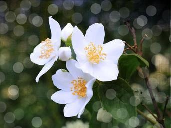 Keywords: jasmin mock orange flowers white bokeh