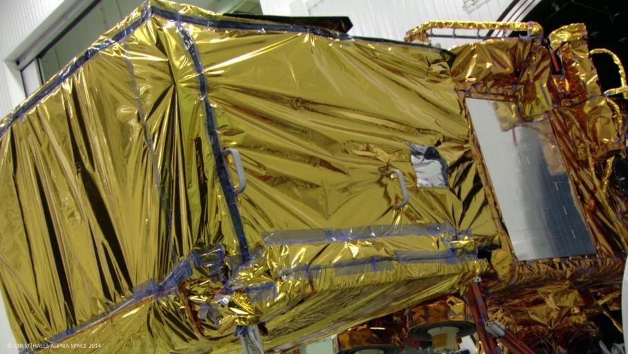 Keywords: jason-3 satellite jason3satellite clean room cleanroom thales alenia space thalesaleniaspace noaa nasa cnes eumetsat The Jason-3 satellite undergoes testing in a clean room at Thales Alenia Space in France. Jason-3 is the fourth mission in the U.S.-European series of satellite missions that measure the height of the ocean surface and other ocean surface characteristics. It is scheduled to launch in July 2015. © CNES/THALES ALENIA SPACE 2014 The Jason-3 satellite undergoes testing in a clean room at Thales Alenia Space in France. Jason-3 is the fourth mission in the U.S.-European series of satellite missions that measure the height of the ocean surface and other ocean surface characteristics. It is scheduled to launch in July 2015. © CNES/THALES ALENIA SPACE 2014