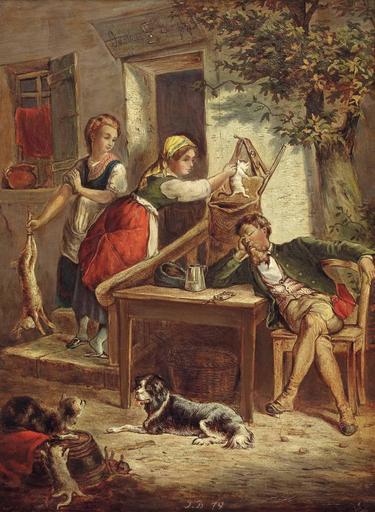 Keywords: JB Der lustige Tausch für den eingeschlafenen Jäger 1874.jpg Der lustige Tausch für den eingeschlafenen Jäger J B monogram 18 74 date oil on canvas ca 38 x 30 cm http //www dorotheum com Dorotheum 1874 žJB PD-old-70-1923 Images from Dorotheum 1874 paintings Sleeping in art Secrecy in art Pranks Dead hares in art Paintings of hunters Paintings of dogs 19th-century paintings of cats |