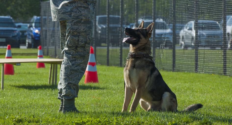 Keywords: joint base andrews jointbaseandrews 11th wing 11thwing maryland usa animal dog outdoor pet Toni, 633rd Security Forces Squadron military working dog, looks up at his handler before they begin an obstacle course for the Joint Base Andrews National Police Week K-9 Competition at JBA, Md., May 16,2016. The competition tested dog teams in physical agility, team rapport and total control. (U.S. Air Force photo by Airman 1st Class Rustie Kramer/Released) Toni, 633rd Security Forces Squadron military working dog, looks up at his handler before they begin an obstacle course for the Joint Base Andrews National Police Week K-9 Competition at JBA, Md., May 16,2016. The competition tested dog teams in physical agility, team rapport and total control. (U.S. Air Force photo by Airman 1st Class Rustie Kramer/Released) |