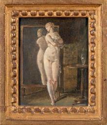 Keywords: Jean-Baptiste Mallet - Femme et psyche.png Artwork Creator Jean-Baptiste Mallet century 19 oil panel size cm 13 5 10 7 object history credit line accession number http //catalogue gazette-drouot com/html/g/fiche jsp id 4457978 PD-old-100 Lot nº65 mis en vente par Beaussant Lefèvre à Drouot Paris le 3 décembre 2014 Estimation formatnum 1200 à formatnum 1800 ‚¬ painting interior French 1801-1850 Jean-Baptiste Mallet WGA form painting WGA type interior WGA School French WGA time period 1801-1850 1810s paintings from France 1810 oil on canvas paintings in France 1810 paintings from France 19th-century oil paintings of standing women at full length 19th-century paintings of bathing females Paintings of nude standing females in the 19th century Petits théâtres de l'intime |