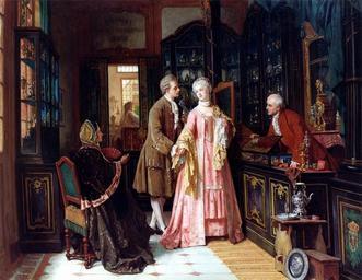 Keywords: Jean Carolus, Choosing the Ring, oil on canvas, 83 x 106.5 cm.jpg Jean Carolus 1814 “1897 Choosing the Ring Oil on canvas Size cm 83 106 5 http //www the-athenaeum org/art/detail php ID 104397 PD-old-100 r_versions Jean Carolus Paintings in art Rococo revival paintings Genre paintings 19th-century paintings 19th-century oil on canvas paintings |