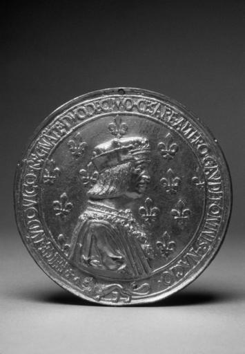 Keywords: Jean de Saint-Priest - Medallion with the Portrait of King Louis XII - Walters 59467 - Side B.jpg This is one of the finest early French portraits In 1500 Louis XII king of France and his queen Anne of Brittany visited the city of Lyon To commemorate this honor the city made a gift to the royal couple of a gold portrait medal with the portrait of Anne on the reverse The little lion at the bottom refers to Lyon while the fleur-de-lys or lily is the emblem of the French king The portrait was designed in anticipation of the visit by the painter Jean Perréal The sculptors Leclerc and Saint-Priest executed the model in exquisite detail and it was then cast by a goldsmith Further casts in gold and bronze were made as gifts 1499 Early Modern bronze with modern gilding cm 11 5 11 5 accession number 59 467 11865 Raoul Heilbronner Paris by purchase Henry Walters city Baltimore Walters Art Museum Henry Walters Acquired by Henry Walters 1908 place of origin Lyon France Walters Art Museum license Renaissance reliefs in the Walters Art Museum Media contributed by the Walters Art Museum needs category review Media contributed by the Walters Art Museum needs artist review Bronze objects with gilding |