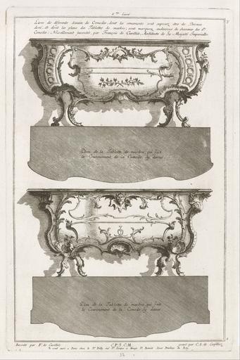 Keywords: Jean-François Cuvilliés - Deux diferents desseins de Comodes - Google Art Project (6717135).jpg 1698 1768 Jean-François 5492447 Cuvilliés 1698 - 1768 /collection/cooper-hewitt-national-design-museum/artwork/deux-diferents-desseins-de-comodes-jean-francois-cuvillies/6717135/ 29816 Jean-François Cuvilliés /artist/francois-de-cuvillies/6805812/ 6805812 /collection/cooper-hewitt-national-design-museum/ Cooper-Hewitt National Design Museum 3644669 http //www cooperhewitt org/ 3/11/2012 5 39 43 PM /collection/cooper-hewitt-national-design-museum/artwork/deux-diferents-desseins-de-comodes-jean-francois-cuvillies/6717135/ 1745 1745 Etching and engraving on off-white laid paper From the Collection of Léon Decloux D 80 and 81 6717135 False 1745 3/25/2012 5 57 01 AM 1921-6-285-33 http //collection cooperhewitt org/view/objects/asitem/id/29816 Purchased for the Museum by the Advisory Council Print 1740 1750 1745 False 0 666015625 Object deux-diferents-desseins-de-comodes-jean-francois-cuvillies Deux diferents desseins de Comodes d Platemark 36 5 x 24 3 cm 14 3/8 x 9 9/16 in Sheet 44 x 28 6 cm 17 5/16 x 11 1/4 in On plate upper center 6me Livre; upper right F; upper center in the image Livre de diferents dessein de Comodes dont les ornaments sont suposez être de Bronse/doré et dont les Plans des Tablettes de marbre sont marquez au dessous de chacunes des dts /Comodes Nouvellement jnventées par François de Cuvilliés Architecte de Sa Majesté Imperialle ; center in the image Plan de la Tablette de marbre qui fait/la Couronement de la Comode Sy dessus ; lower center in the image Plan de la Tablette de marbre qui fait/la Couronement de la Comode Sy dessus ; lower left Inventé par F de Cuvilliés; lower center C P S C M /Se vend aussi a Paris chez le Sr Poilly ruë St Iacque a limage St Benoit Avec Privilege du Roy ; lower right gravé par C A de Lespilliez/1 Etching and engraving on off-white laid paper From the Collection of Léon Decloux D 80 and 81 special url_id tAHC-vj39zq47w PD-old-100-1923 1768 Collections of the Cooper “Hewitt Smithsonian Design Museum Google Art Project works by Jean-François Cuvilliés Poilly family Google Art Project works in Cooper-Hewitt Smithsonian Design Museum |