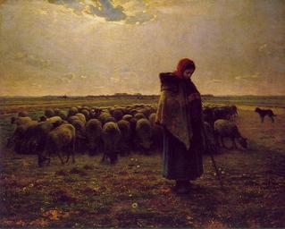 Keywords: Jean-François Millet Pastora.jpg enThe Shepherdess Hirtin La Pastora Pastora com seu rebanho 1864 Oil on canvas cm 81 101 Museum Musée d'Orsay Schule von Barbizon Genre works source 1863 1864 Creator Jean-François Millet II PD-old-100 Other versions thumb left DEFAULTSORT Jean-François Millet Pastora jpg Paintings by Jean-François Millet in the Musée d'Orsay Realist paintings Shepherds in art Paintings of sheep Portrait paintings of girls at full length 1863 paintings Pastoral