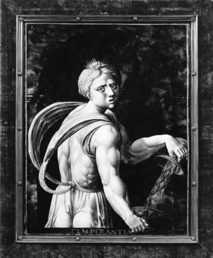 | Keywords: Jean Pénicaud II - Temperance - Walters 44187.jpg She is represented as a young woman in over half-length pouring liquid from one gilt tazza into another Her sparsely draped figure is seen from the back in three-quarters view to the right Her hair is brought around her head in two plaits knotted at the central part She casts a shadow against a niche imitating jasper flecked with glazes of dark red blue and yellow The iconography of this piece as well as Walters 44 188 is decidedly Italian not French It is to be related to the practice of High Renaissance Italian sculptors of placing the cardinal virtues in the niches of tombs a practice followed in France cf E Panofsky Tomb Sculpture New York 1964 pp 74 f ca 1540 1545 technique painted enamel gold copper cm 27 5 21 2 accession number 44 187 14498 Duke of Marlborough Blenheim Castle date and mode of acquisition unknown Blenheim Castle Sale London June 14 1883 no 66 Lucien Cottreau date and mode of acquisition unknown Sale Paris April 28-29 1910 no 54 J Pierpont Morgan date and mode of acquisition unknown Henri Daguerre Paris date and mode of acquisition unknown Henry Walters city Baltimore Walters Art Museum Henry Walters Acquired by Henry Walters 1928 Signature at the top P I Pénicaud Iunior Transcription at the base TEMPERANTIA Exposition Universelle Paris 1889 place of origin Limoges France Walters Art Museum license Limoges painted enamels in the Walters Art Museum Jean Pénicaud II Media contributed by the Walters Art Museum needs category review Painted enamel art in the Walters Art Museum |