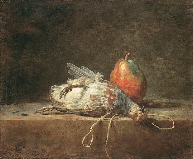 | Keywords: Jean Siméon Chardin - Still Life with Partridge and Pear - Google Art Project.jpg commons artist commons date commons medium commons dimensions commons institution Institution Städel commons location commons references commons object_history commons exhibition_history commons credit_line commons inscriptions commons notes commons accession_number commons source commons permission commons other_versions commons zoom core title Still Life with Partridge and Pear core creator Jean Siméon Chardin core date dateCreated 1748 core format w45 5 x h39 2 cm Complete core type Canvas core rights Städel Museum “ Artothek core relation http //www staedelmuseum de/sm/index php StoryID 1041 ObjectID 180 art artist_birth_place Paris art artist_nationality French art artist_death_place Paris art artist_date 1699/1779 google display_date 1748 google is_artproject TRUE google is_gigapixel FALSE google is_secured TRUE google partner/id 00000000057077c9 google picasa_token EdJoAV1EO6bFU1aro5EDzgyIEkM special url_id RQEkAzwWaRTFaA google partner/name Städel Museum special partner/name_no_lang Städel Museum PD-old-100 Still life paintings by Jean Siméon Chardin Google Art Project works by Jean Siméon Chardin |