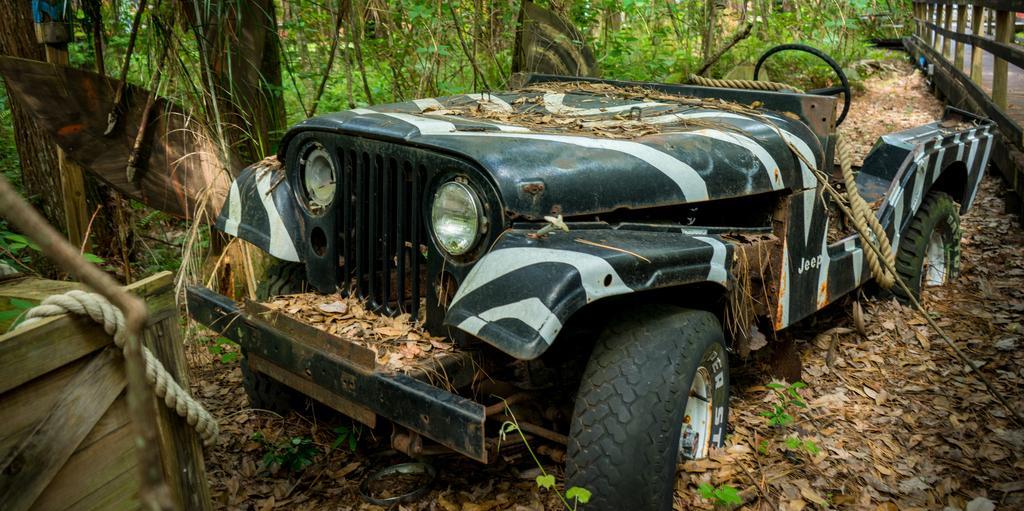 Keywords: jeep old adventure tropical off-road vintage vehicle broken down abandoned sport