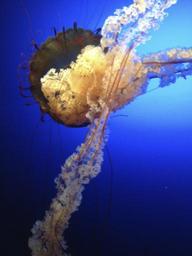 Keywords: jellyfish blue creature deep sea creature transparent translucent